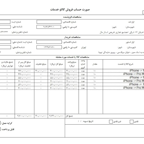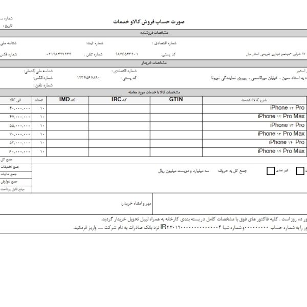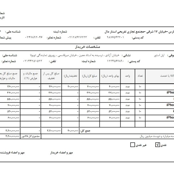 فاکتور مخصوص شرکت دارویی